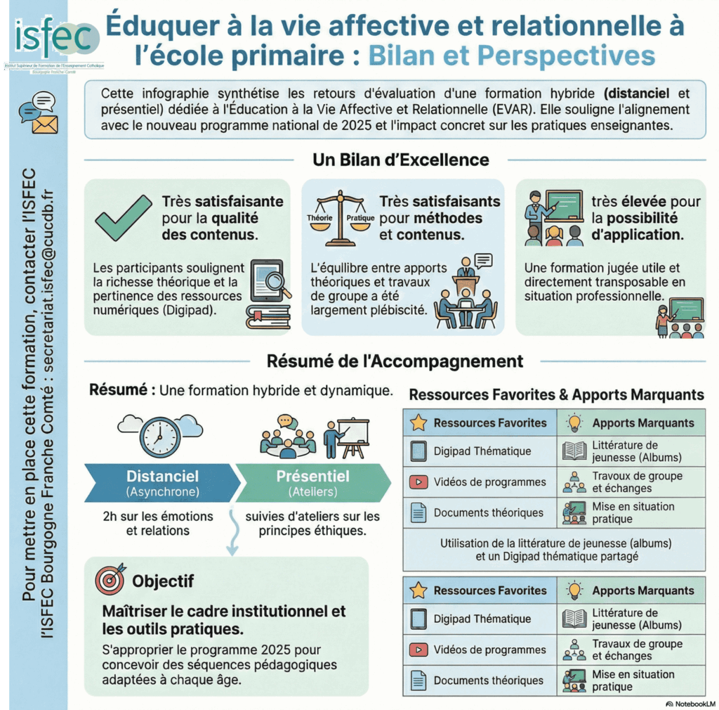 La rentrée 2025 a marqué un tournant décisif dans le paysage éducatif français avec le déploiement du nouveau programme national d’Éducation à la Vie Affective et Relationnelle (EVAR). Pour accompagner les enseignants du 1er degré de Bourgogne et de Franche-Comté dans cette transition, l’ISFEC Bourgogne Franche-Comté a proposé une formation structurante et concrète, ce mercredi 21 janvier 2026, financée par Formiris.