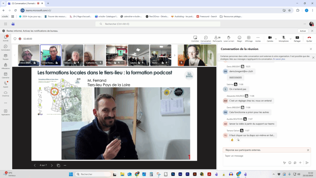 - Amandine, notre ingénieure pédagogique, voit son train qui est annoncé avec beaucoup de retard et doit rebrousser chemin pour rejoindre la rencontre prévue avec les autres référents régionaux à 9h30… à distance, depuis chez elle.