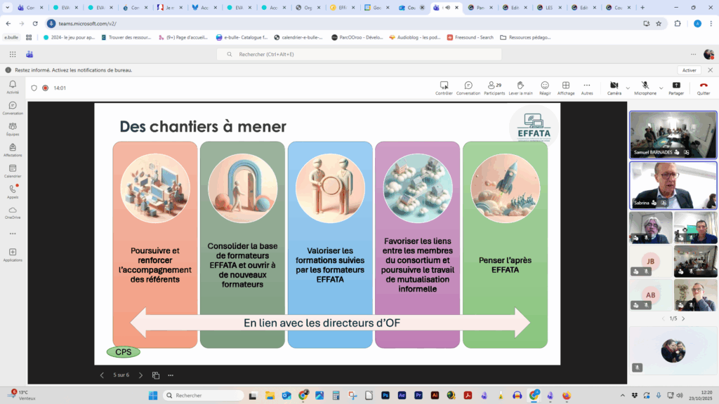 Les participants ont ensuite travaillé en ateliers pour adapter leurs pratiques : recenser les profils d’apprenants, identifier les obstacles, imaginer des solutions concrètes. Une démarche collaborative qui illustre le coeur d’EFFATA : innover ensemble pour mieux former.