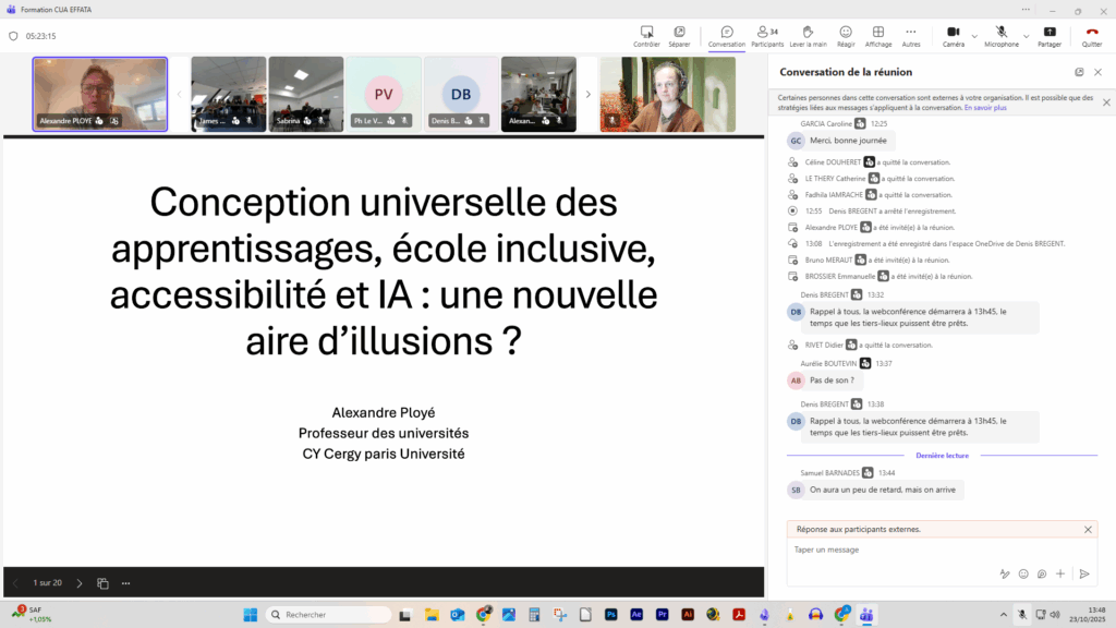 Place à la réflexion avec la conférence d’Alexandre Ployé : « Conception universelle des apprentissages, école inclusive, accessibilité et IA : une nouvelle ère d’illusions ? ».