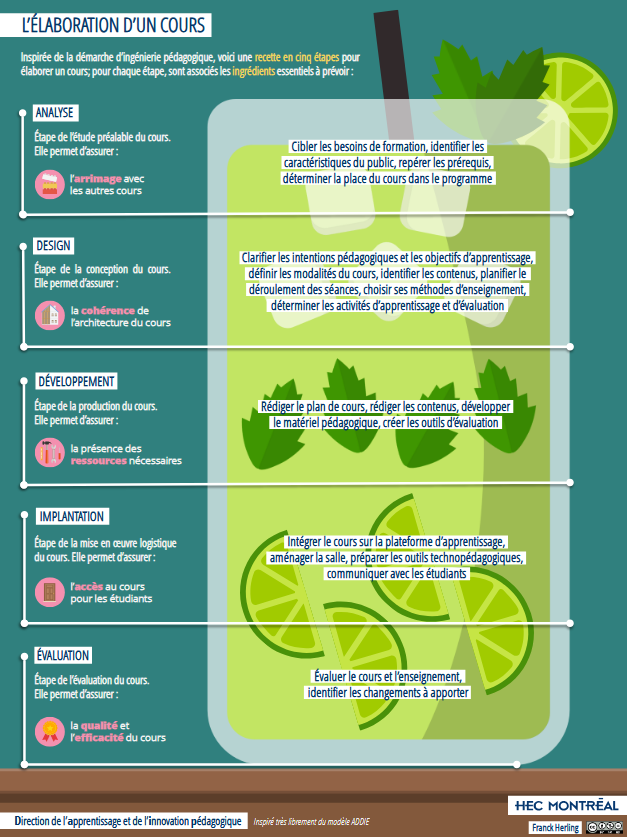 Herling, F. (HEC Montréal). L’élaboration d’un cours. Direction de l’apprentissage et de l’innovation pédagogique. https://enseigner.hec.ca/pedagogie/affiches/
