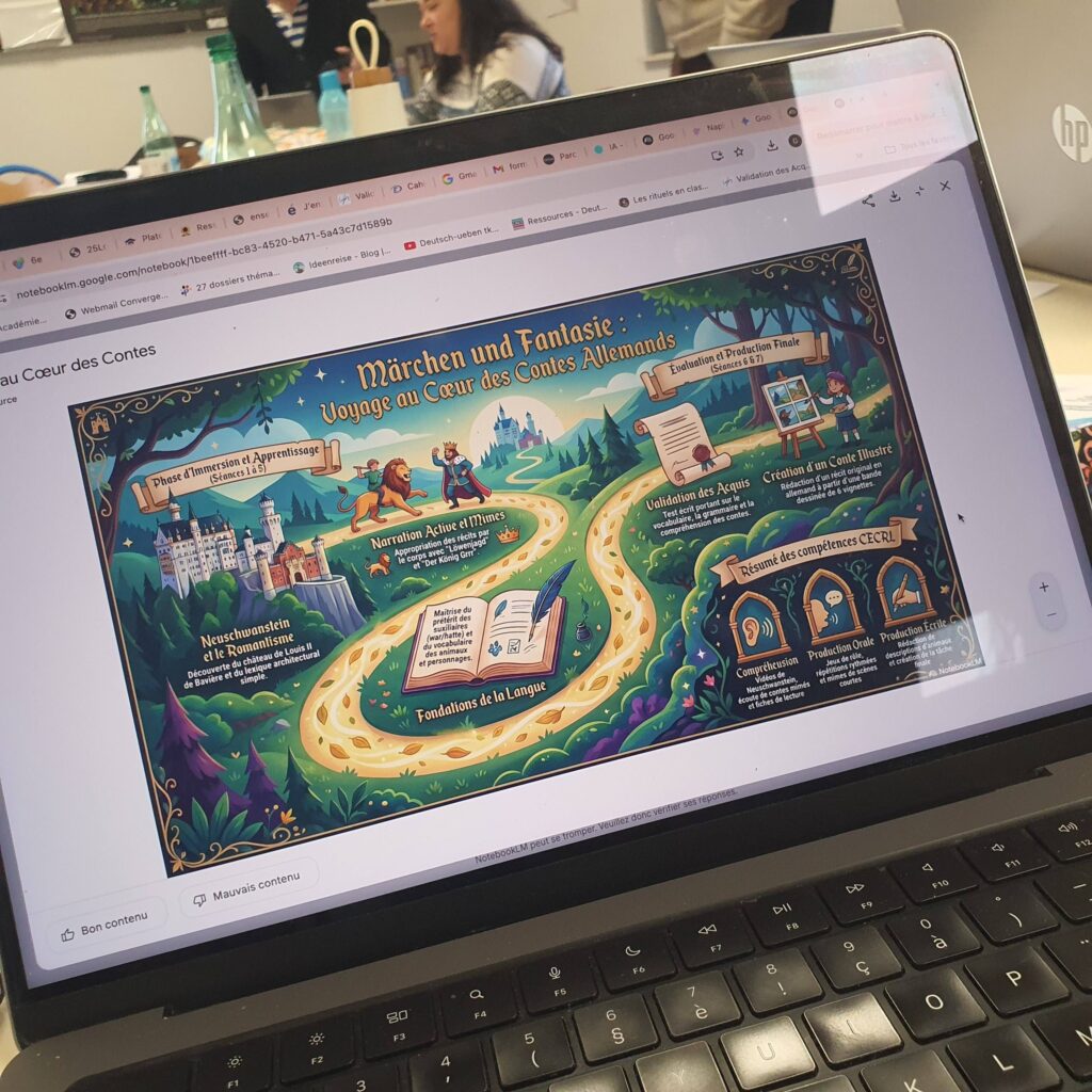 Le cœur de la formation a résidé dans la manipulation concrète d’outils de pointe tels que NotebookLM, ChatGPT, Gemini, Napkin ou encore Perplexity/ Comet. Les enseignants ont découvert l’art délicat du « prompting » : rédiger des requêtes précises pour obtenir des contenus de haute qualité tout en réduisant l’empreinte écologique (un seul prompt précis valant mieux que plusieurs tentatives approximatives). La différenciation pédagogique a été l’un des points forts, l’IA permettant de créer en quelques clics des parcours adaptés aux besoins spécifiques de chaque élève, qu’ils soient en difficulté ou en recherche d’approfondissement.