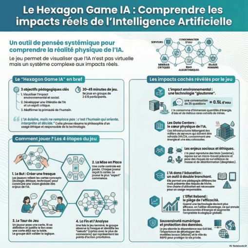 Comment sensibiliser à l’impact réel de l’intelligence artificielle tout en favorisant la collaboration et la réflexion critique ? Hexagon Game IA, conçu par Rachel Bucaille pour l’ISFEC Bourgogne Franche-Comté, est bien plus qu’un simple jeu : c’est un outil pédagogique innovant qui invite à explorer les enjeux éthiques, sociaux et environnementaux liés à l’IA.