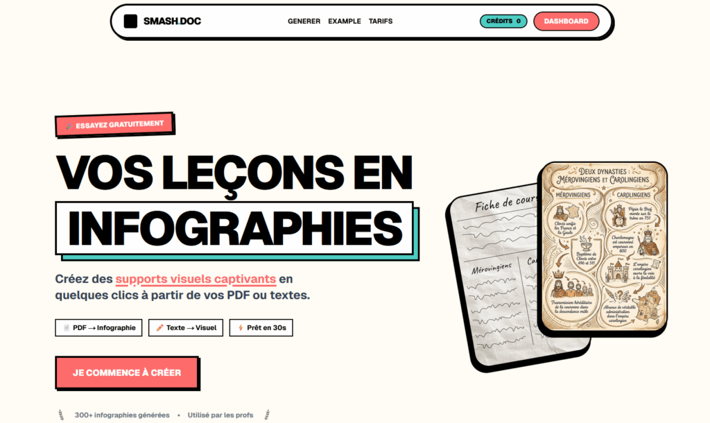 Les enseignants cherchent souvent à rendre leurs supports plus visuels et attractifs sans passer des heures sur des outils complexes. C’est là que Smashdoc entre en scène : une solution en ligne qui promet de transformer vos textes ou PDF en infographies “dessinées à la main” en moins de 30 secondes. Mais que vaut réellement cet outil pour un usage pédagogique ? Nous l’avons testé pour vous.