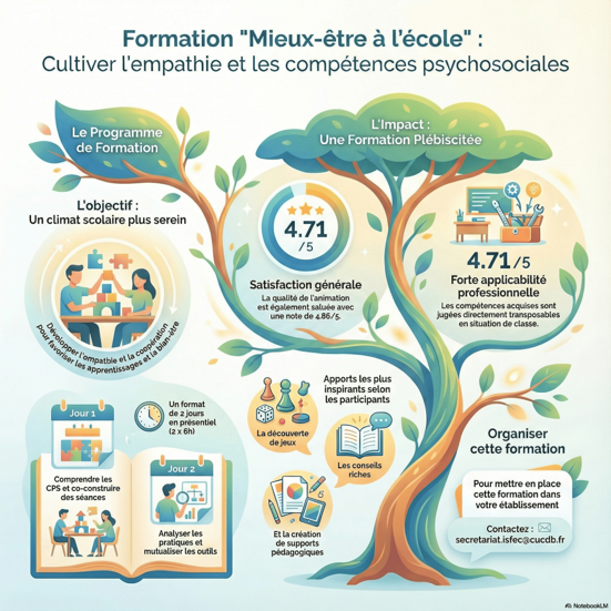 Dans un contexte éducatif parfois marqué par le stress et les tensions, cette formation a permis de (re)découvrir l’importance des CPS : empathie, coopération, régulation émotionnelle, estime de soi… Autant de compétences clés pour accompagner les élèves dans leur développement personnel et social.