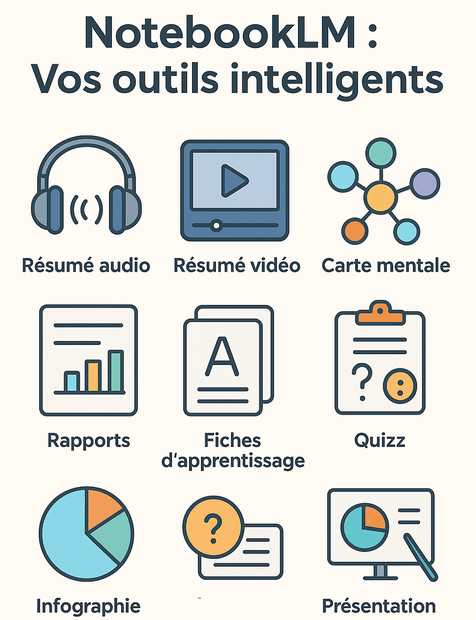 NotebookLM, l’outil d’intelligence artificielle que nous apprécions pour ses fonctionnalités au service des apprenants (quiz, audio, flashcards), franchit une nouvelle étape. Son objectif reste le même : faciliter la mémorisation et rendre l’apprentissage accessible à tous. Mais il s’enrichit aujourd’hui de deux nouvelles fonctions : la création d’infographies et la génération de présentations type diaporama.
