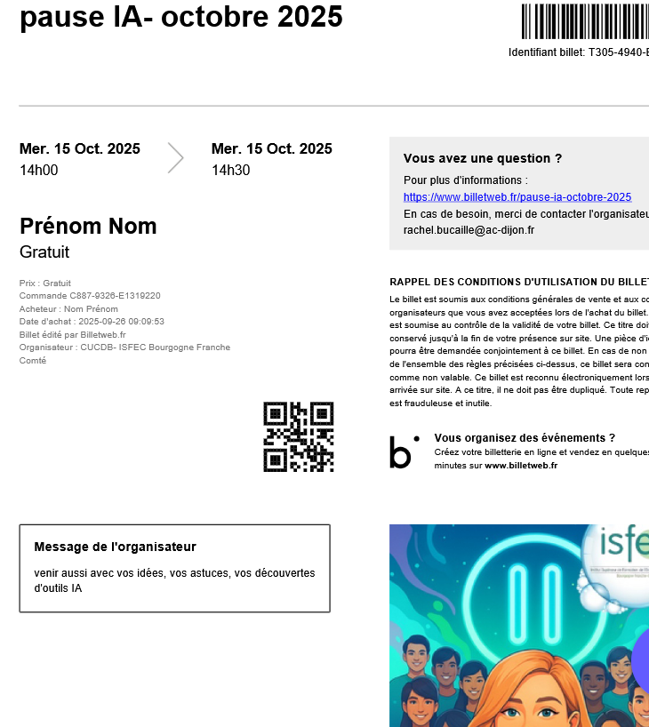 Prochain rendez vous : mercredi 15 octobre de 14h à 14h30. Réservez votre participation sur billetweb pour envoi du lien: https://www.billetweb.fr/pause-ia-octobre-2025