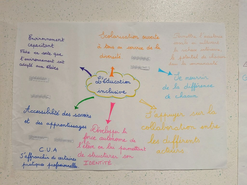 Les participants ont alterné des temps d’expérimentation et de réflexion, découvrant des pratiques inclusives et partageant leurs représentations. Ces échanges ont permis de mettre en lumière l’importance de la coopération et de la posture professionnelle dans la réussite de tous les élèves.