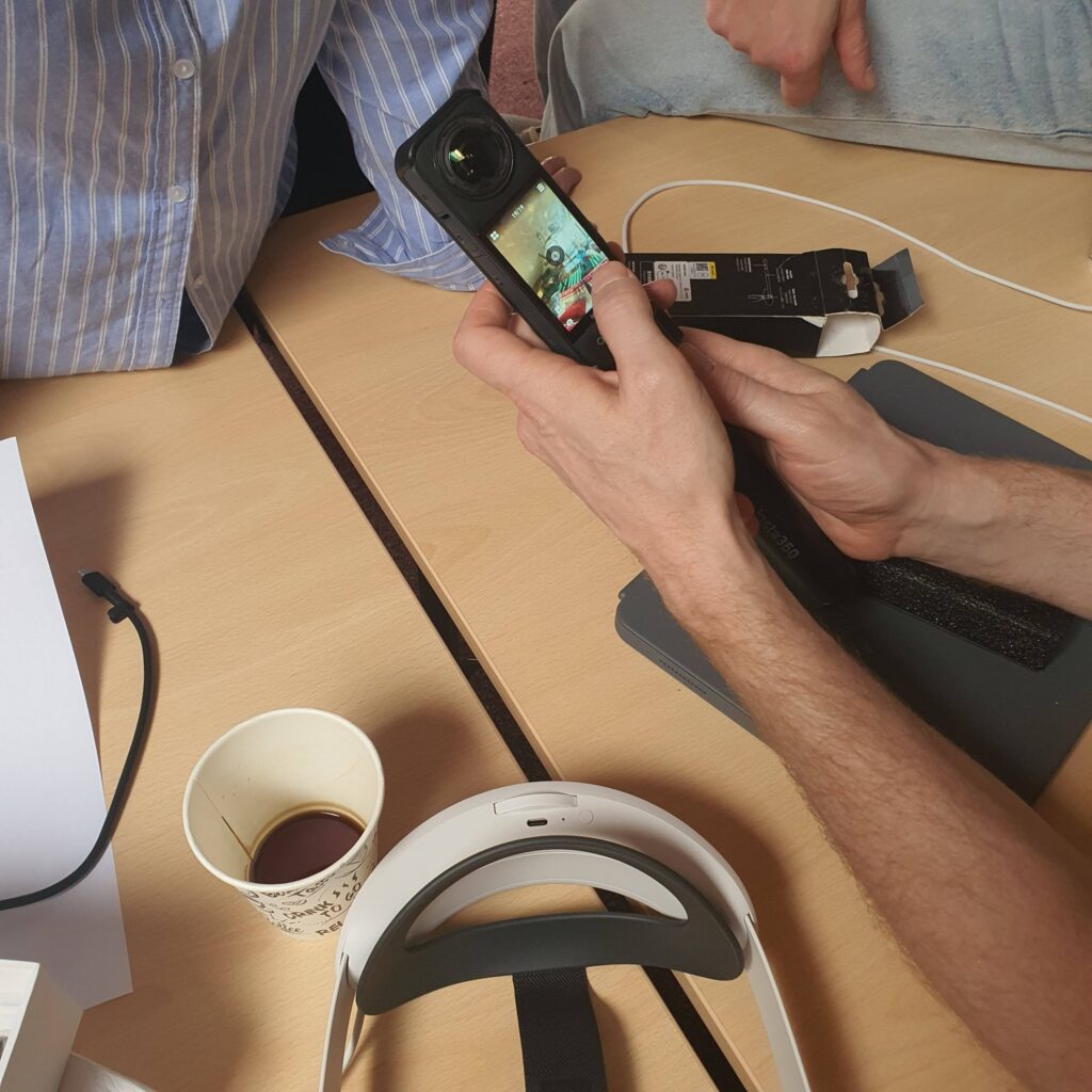 La seconde partie de la journée a été dédiée à la pratique : captation de vidéos 360° avec Insta 360, transfert vers les casques VR. Des pistes d’applications à tester:
