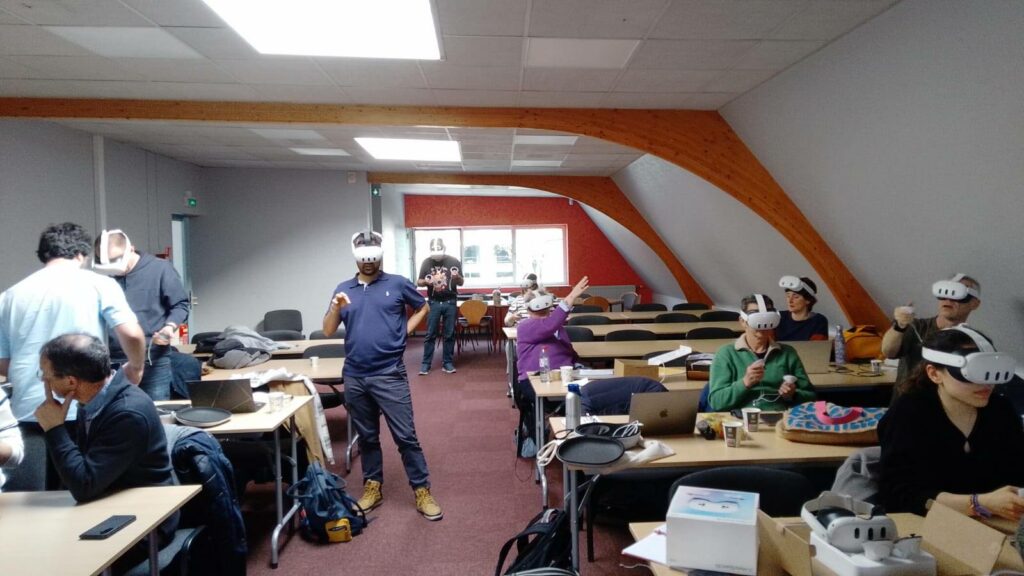 Le point d’orgue de l’événement fut l’apport théorique et pratique de Vincent REYNAERT (Université Catholique de Lille) sur la réalité virtuelle. Entre réalité augmentée (superposition d’infos), réalité virtuelle, réalité mixte et réalité étendue (XR), les participants ont pu clarifier les concepts et tester des équipements de pointe comme le Meta Quest 3.