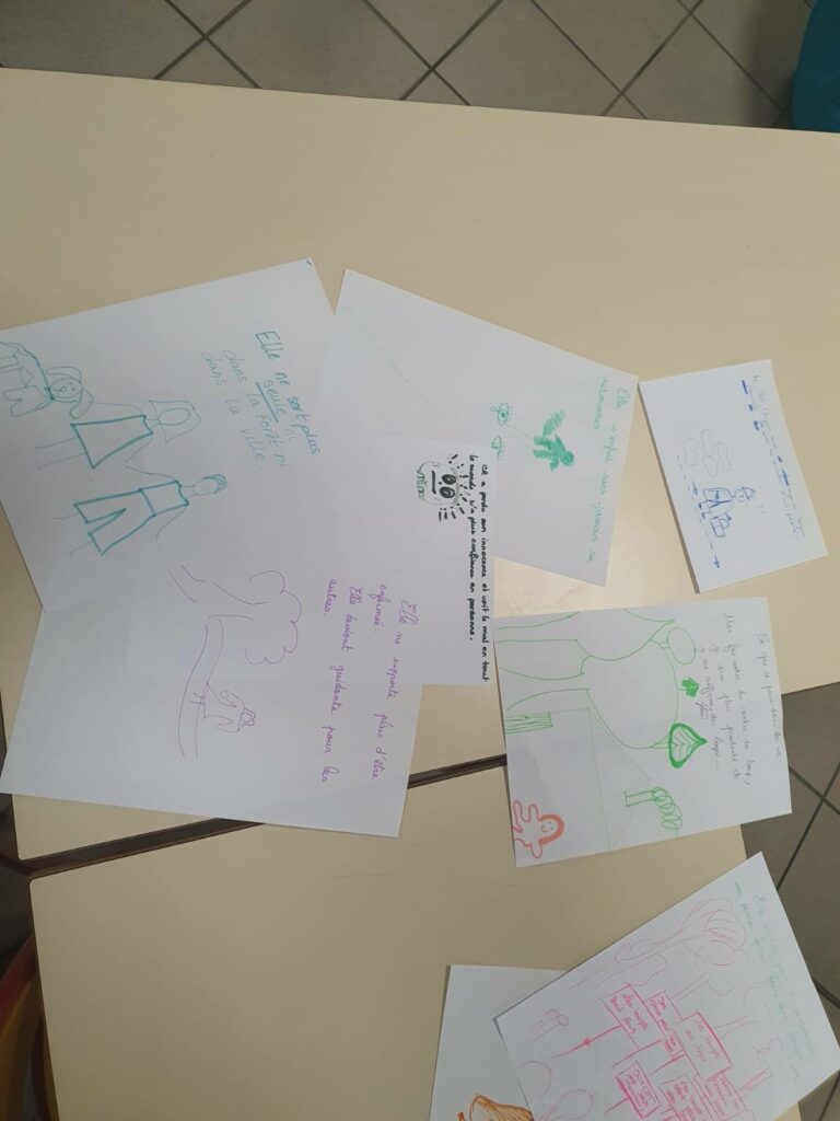 Une activité participative a permis aux enseignantes d’imaginer la suite de l’histoire après l’épisode dramatique du « ventre du loup ». Les propositions ont été variées et inspirantes : du Petit Chaperon Rouge devenu chasseuse légendaire à des réflexions sur l’affirmation de soi, la solidarité ou les conséquences psychologiques d’un traumatisme.