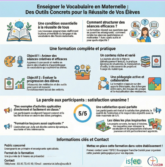 Le langage est au cœur des nouveaux programmes de l’école maternelle, s’affirmant comme le pilier essentiel de la réussite scolaire. Mais comment transformer l’acquisition spontanée du lexique en un enseignement explicite, structuré et surtout motivant… Le pouvoir des mots dès la maternelle : Retour sur une formation inspirante de l’ISFEC Bourgogne France-Comté