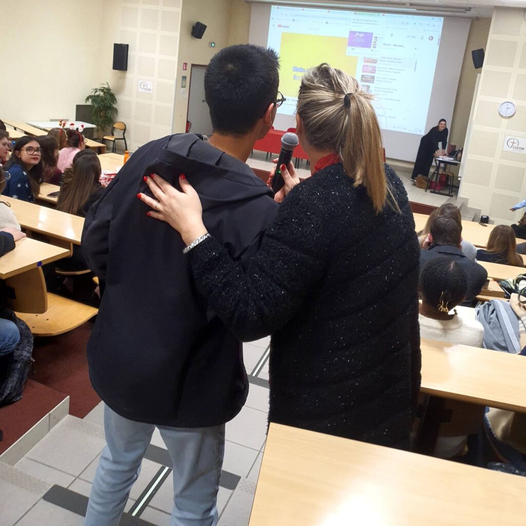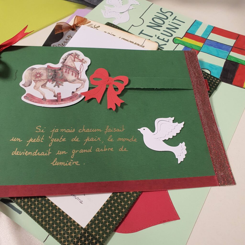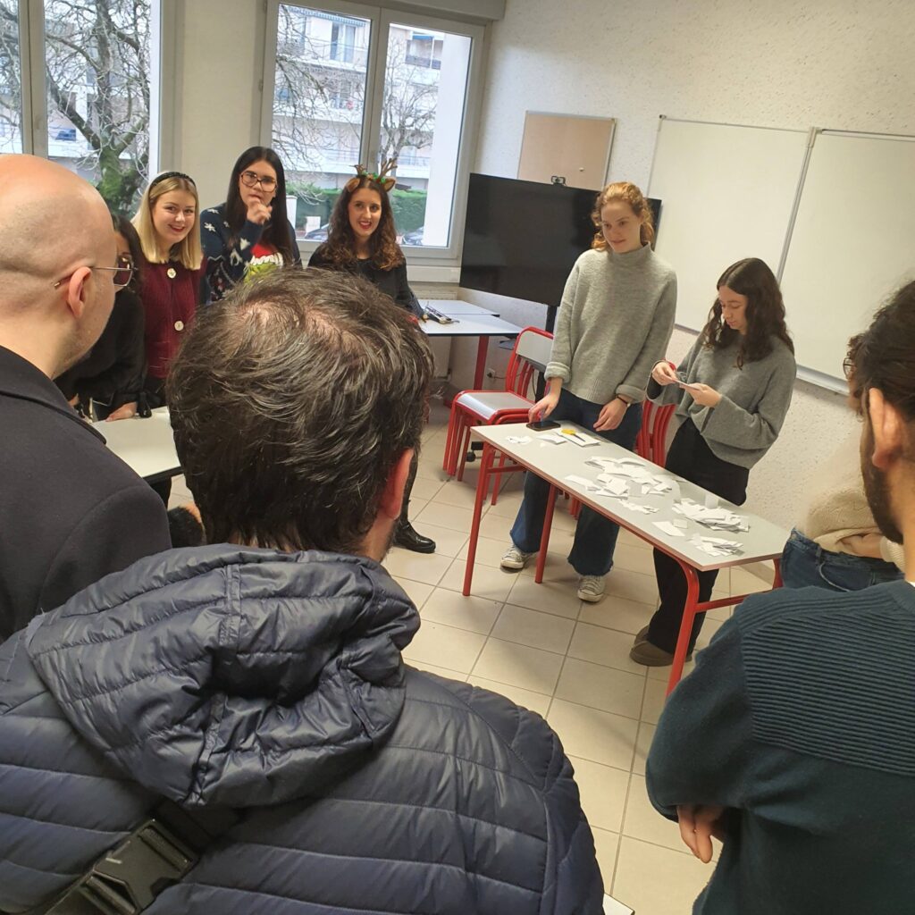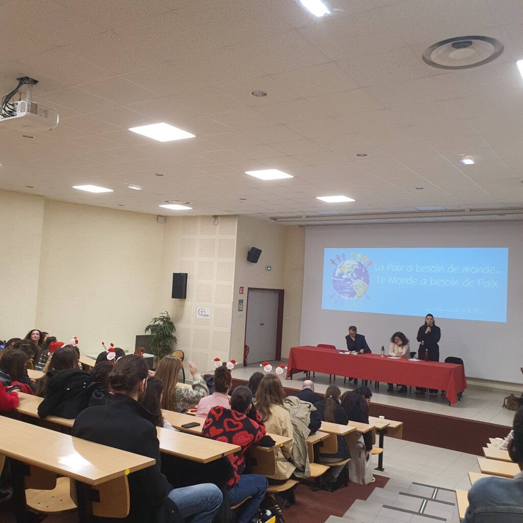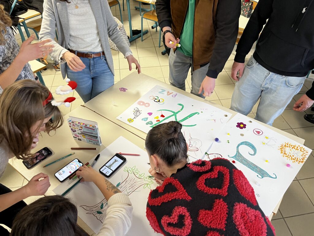 Le début de l’après-midi a ensuite démarré dans une ambiance joyeuse et fédératrice avec des chants de Noël en mode karaoké dans l’amphithéâtre. Un moment léger et convivial, qui a permis de recharger les énergies avant de repartir pour la seconde série d’ateliers, toujours placée sous le signe de la paix, de la créativité et du vivre ensemble.