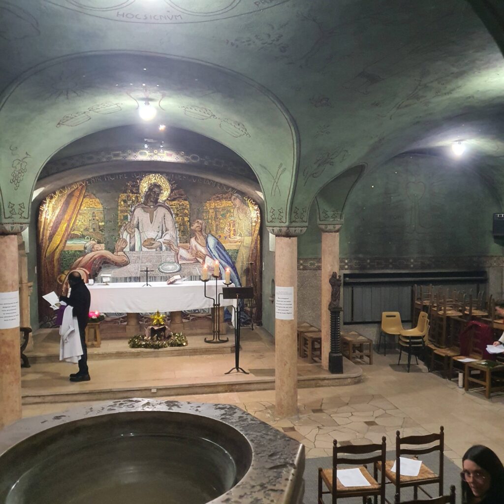 Au terme de ce témoignage profondément émouvant, celles et ceux qui le souhaitaient ont pu rejoindre la crypte de l’église du Sacré-Cœur pour un temps spirituel, à l’occasion de la messe du CUCDB. Ce moment, proposé sans obligation, a offert un espace de recueillement, de silence et d’intériorité, en résonance avec ce qui venait d’être partagé. Les chants, porteurs de paix et d’espérance, continuent encore de résonner dans nos têtes, prolongeant cette parenthèse hors du temps et rappelant que, pour certains, la paix se vit aussi dans la spiritualité, la musique et le lien à plus grand que soi.